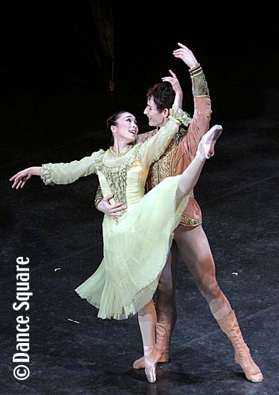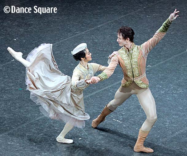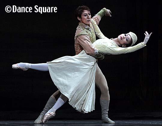 ほどなく人妻アンナとウロンスキーは出会い、視線を絡ませる。場面は移り、第二場は、モスクワの広場。スケートをする人々たちの群舞も変化があり飽きさせない。チャイコフスキーの楽曲からガイ・ウールフェンデンが構成・編曲した音楽は、ときに登場人物の心情と同化し、あるいは、このシーンのようにダンスを彩り、また第二幕の雪だるまのシーンのように背景音楽のようにも奏でられる。江原功指揮、東京ニューフィルハーモニック管弦楽団は、その音楽の流れを大事にしていて好感がもてた。「譜面を信じた演奏」と言おうか、妙な主張はなく、素直に美しく響かせていた。そしてそれこそが最大の効果を生んだ。 |